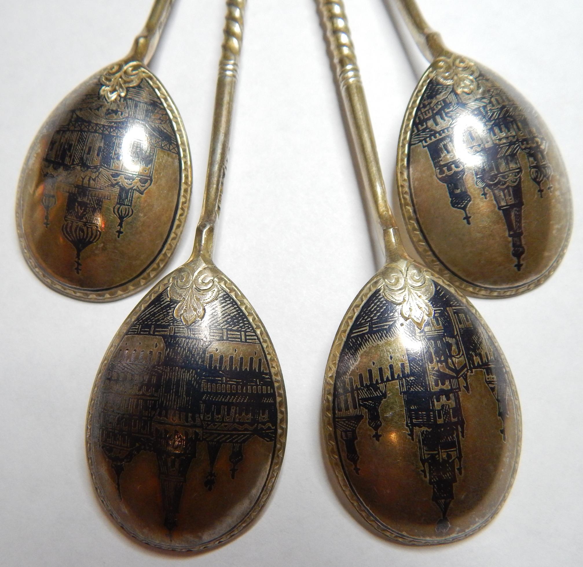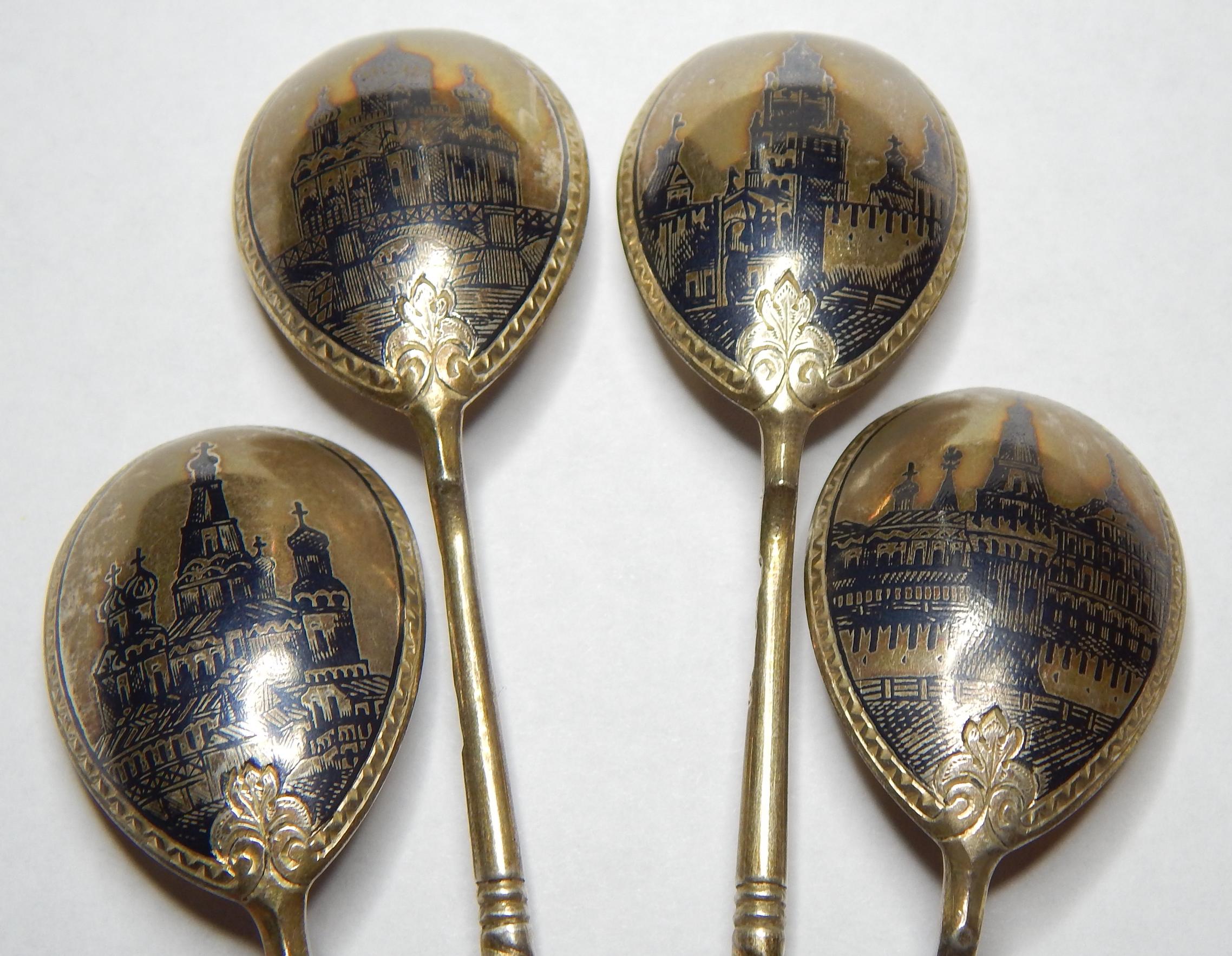 Продам набор из 4 кофейных ложек с черневыми гравюрами "Виды Москвы".