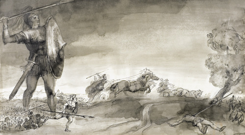 Лебедев Д.В. (1905-1987) "Эскиз к картине "Троянская война" (1932). Бумага, тушь, акварель. 35х64. В раме, под стеклом.