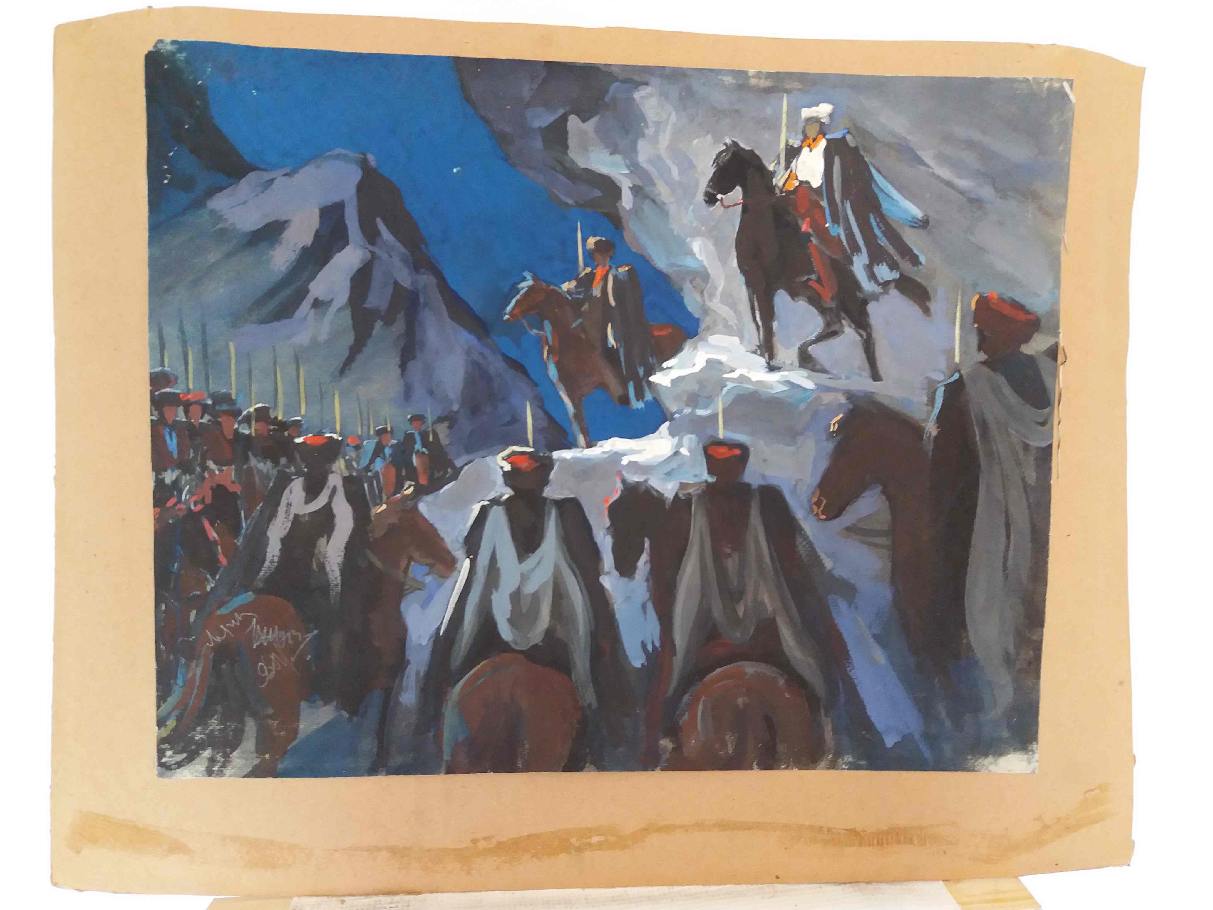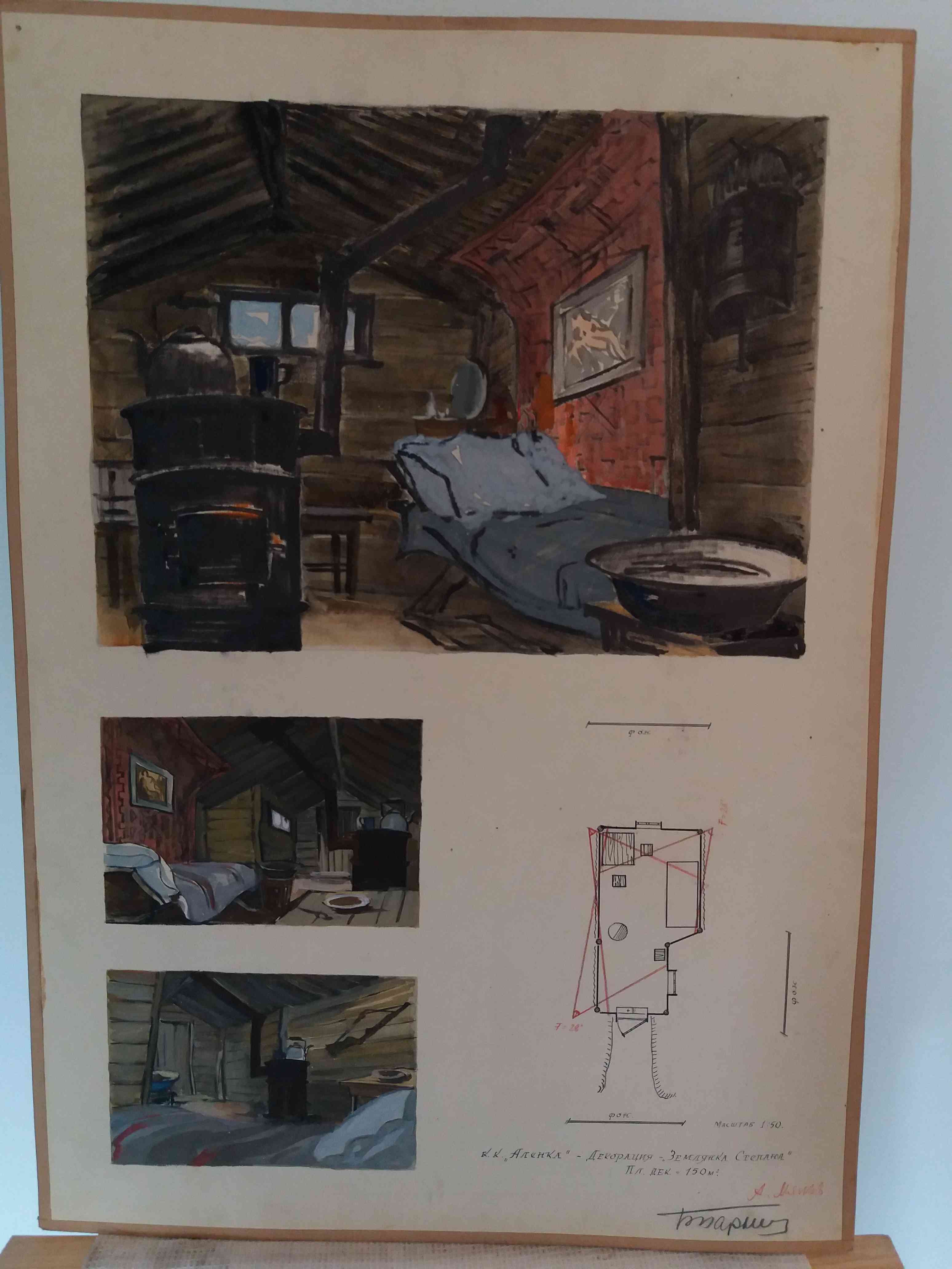 Хотелось бы познакомить уважаемых форумчан с работами этого замечательного художника Советского кино, хотя если не все, то очень многие смотрели фильмы, над которыми работал Александр Васильевич, такие как "Песня табунщика" 1956г. ; "Лавина с гор" 1959 г. ; "Испытательный срок" 1960г. ; "Алёнка" 1962г. ; "Я шагаю по Москве" 1964г. ; киноэпопея "Освобождение" 1970-1972гг. ; "Выбор цели" 1976 и др. А.В Мягков родился 19 мая 1923 года в Москве, участник Великой Отечественной Войны. В 1953 году закончил художественный факультет ВГИКА, ученик Ф.Богородского, Ю.Пименова, Г.Шегаля. В 1972 за оформление киноэпопеи "Освобождение" удостоен "Ленинской премии". Это вкратце. Прошу не судить строго за ошибки в тексте, если таковые имеются и качество фотографий, к сожалению фотоаппарат не передает истинного восприятия эскизов. Хотелось бы начать с первой его работы в кино, совместно с не менее замечательным художником А.И Тиминым. Над фильмом "Песня Табунщика". Последний раз редактировалось Алёша; 11.08.2016 в 22:09.  |