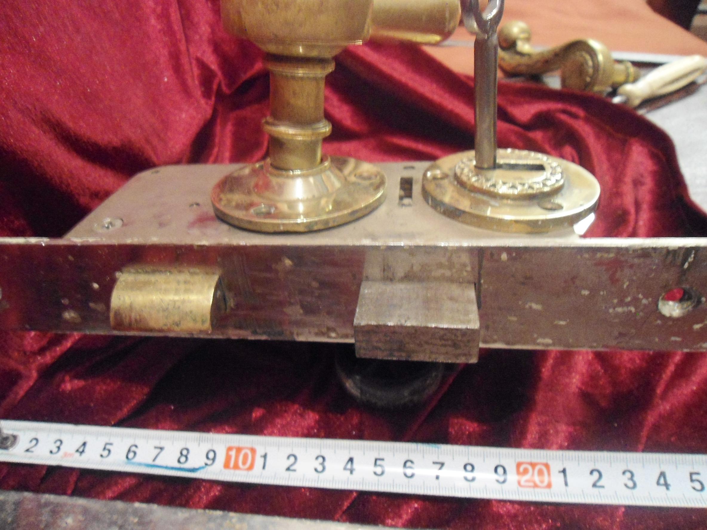 Дверной замок с ручками. Сталинский ампир. Бронза. Все работает. на дверь толщиной 50 мм. ключ 1 штука. Ручки и накладки - литье. язык-защелка бронза. Ригель клепанный четыре пластины - сталь. Вес замка - 3300 гр. Длина планки замка - 24 см. Дополнительные фото по запросу. замок с ручками не один.