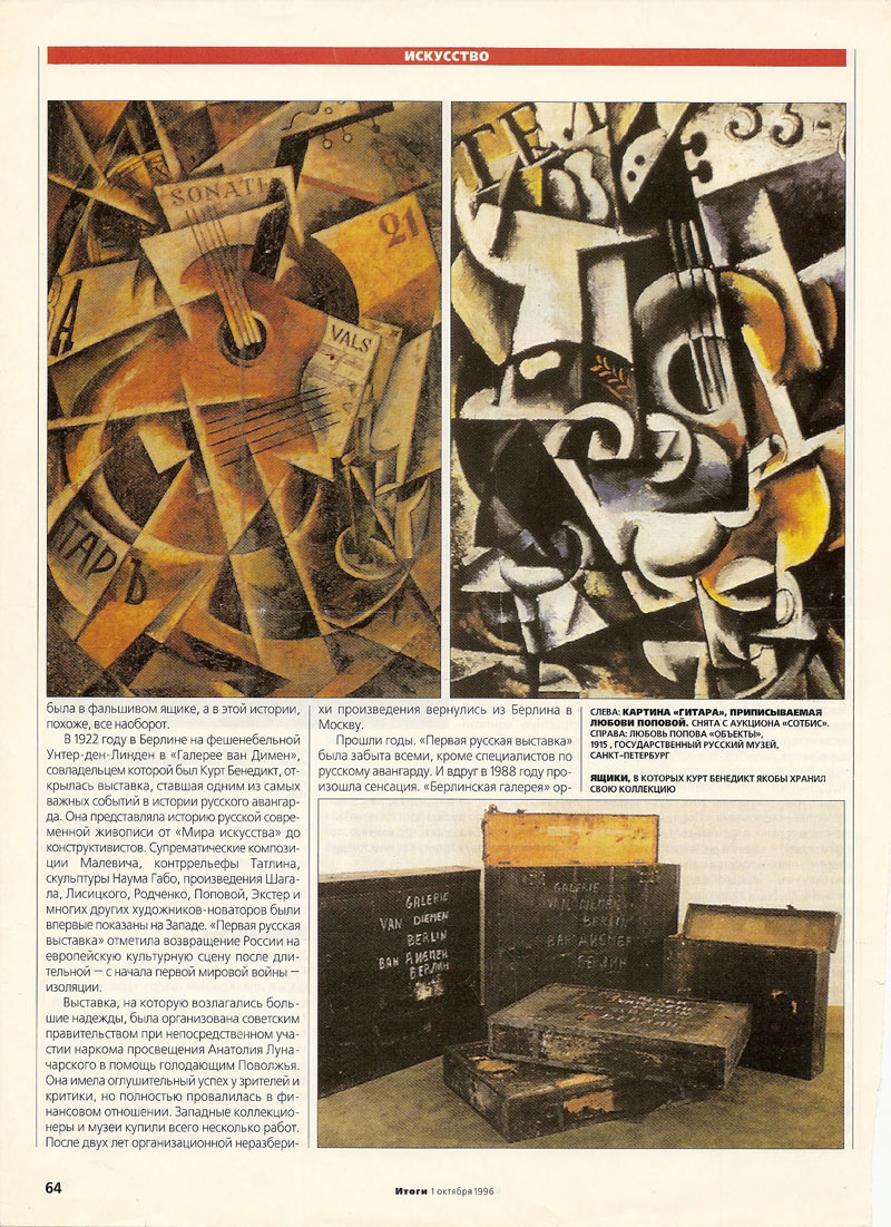 Нашла еще на эту тему, в т.ч. более подробное описание событий из статьи, предоставленной OlgaV (Берлинской выставки 1922г)