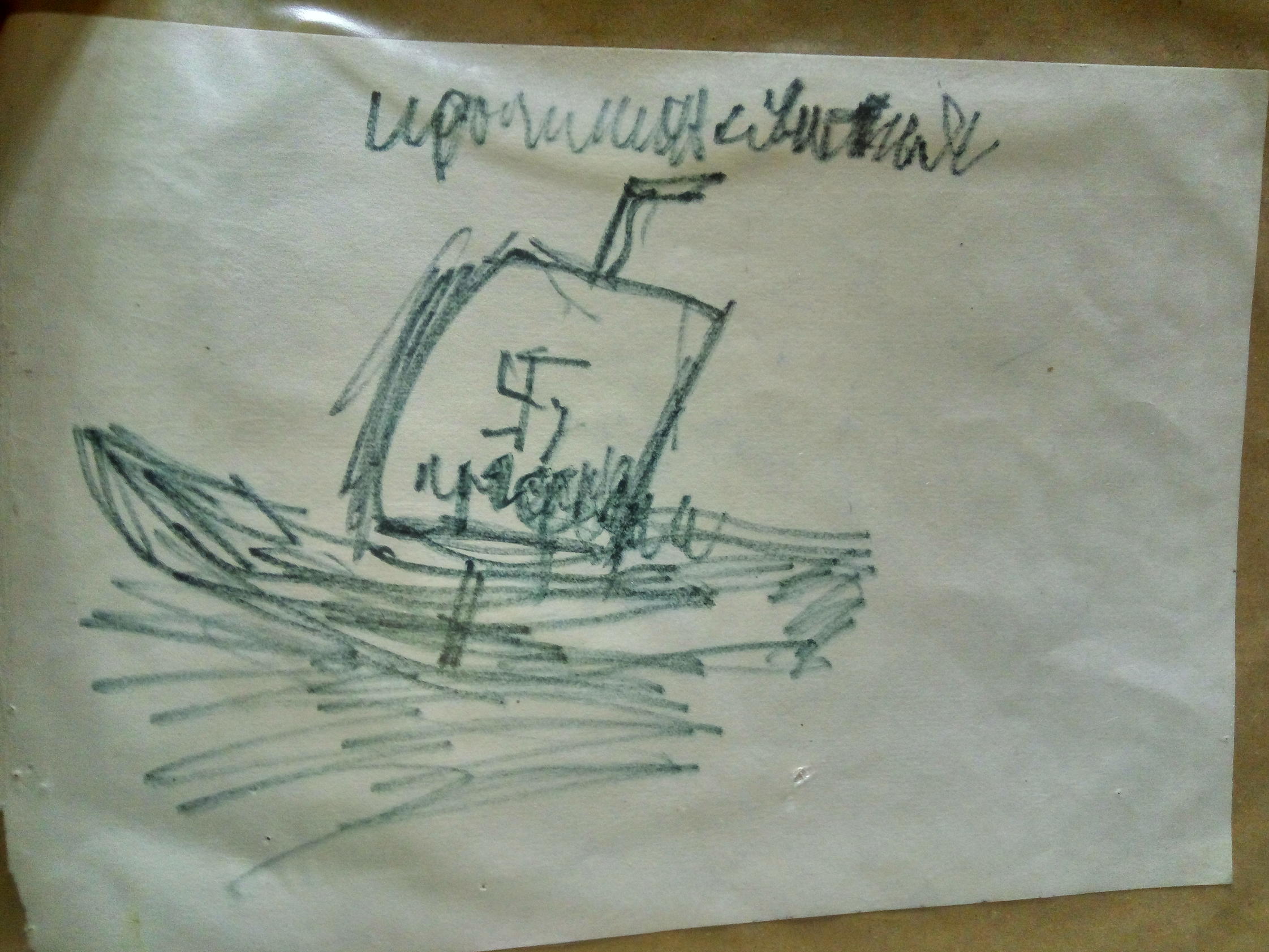 Особенно тронул кораблик со свастикой, и надписью - неразборчиво. Кстати надпись напоминает письмена сумасшедших. Поздравляю!