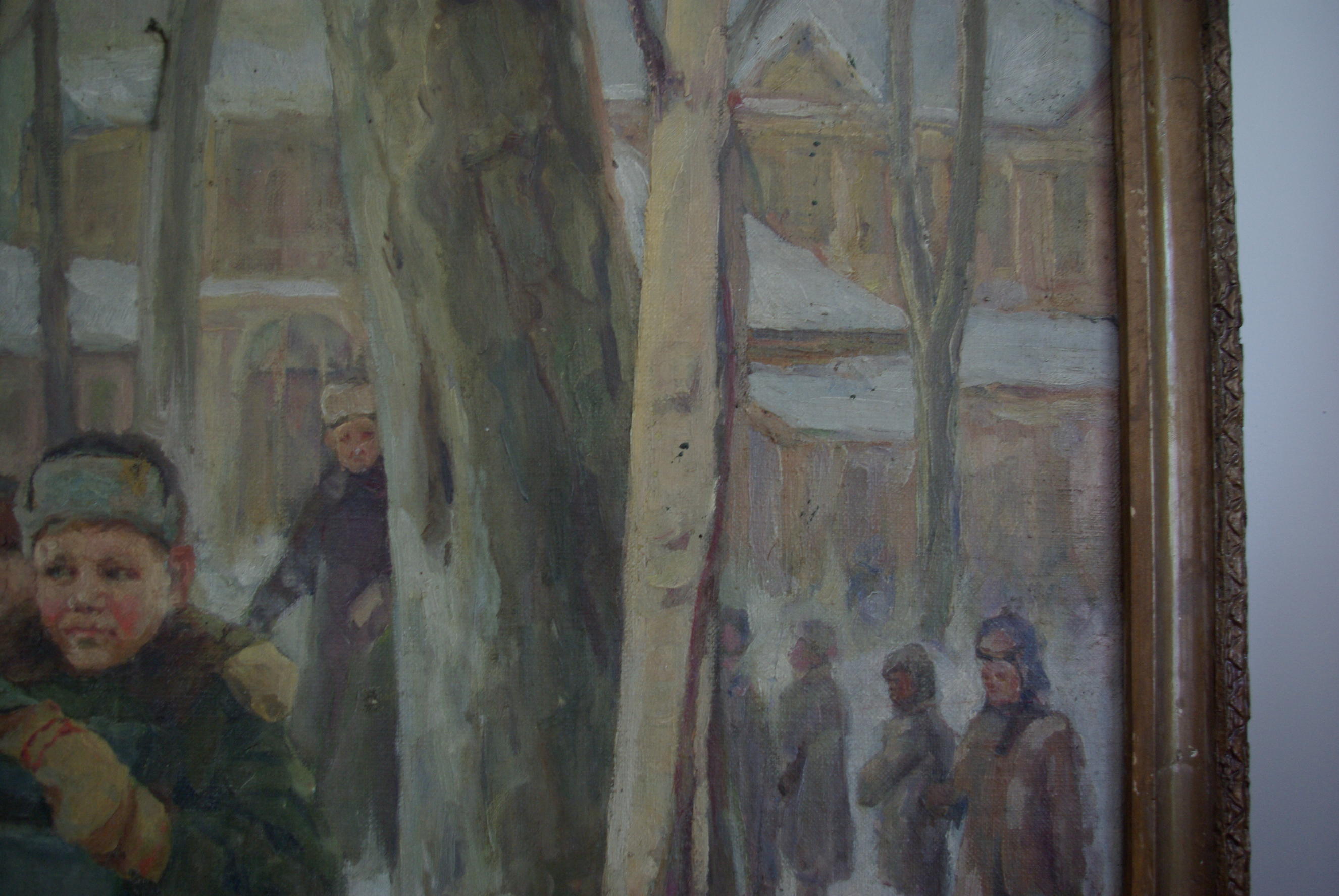 Уважаемые эксперты, прошу вас помочь в материальной оценке копии картины Варламова 1950г. «В. И. Ленин с детворой», а так же по возможности стоимости и целесообразности работ по реставрации.