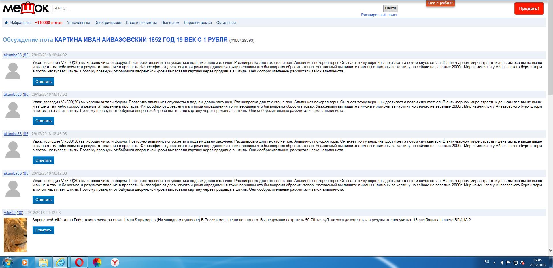 Перед тем, как всем пожелать хорошо проводить СГ, а потом также, хорошо встретить НГ, хотелось бы резюмировать ситуацию с продажей картины сомнительного авторства И.Айвазовского.