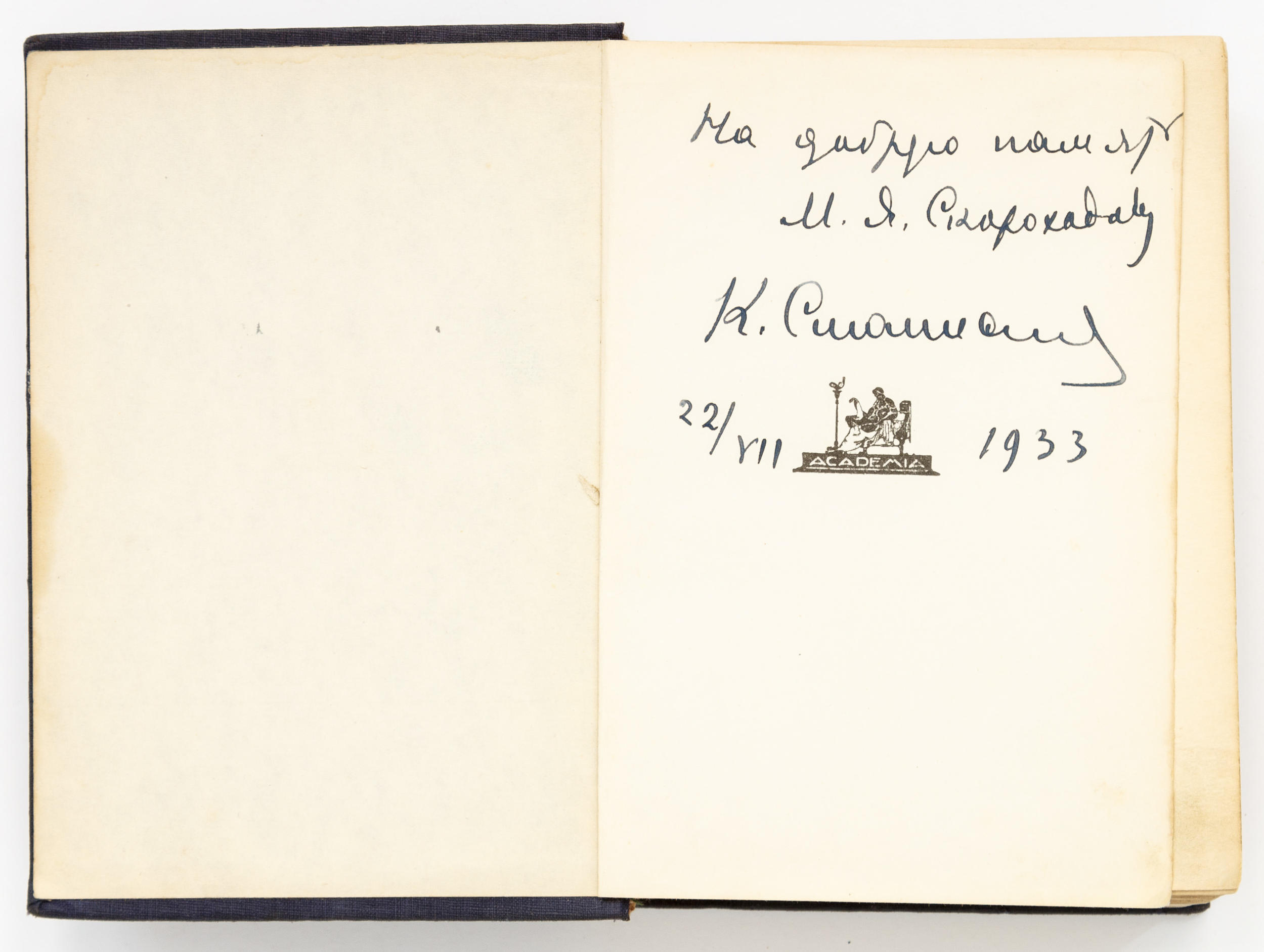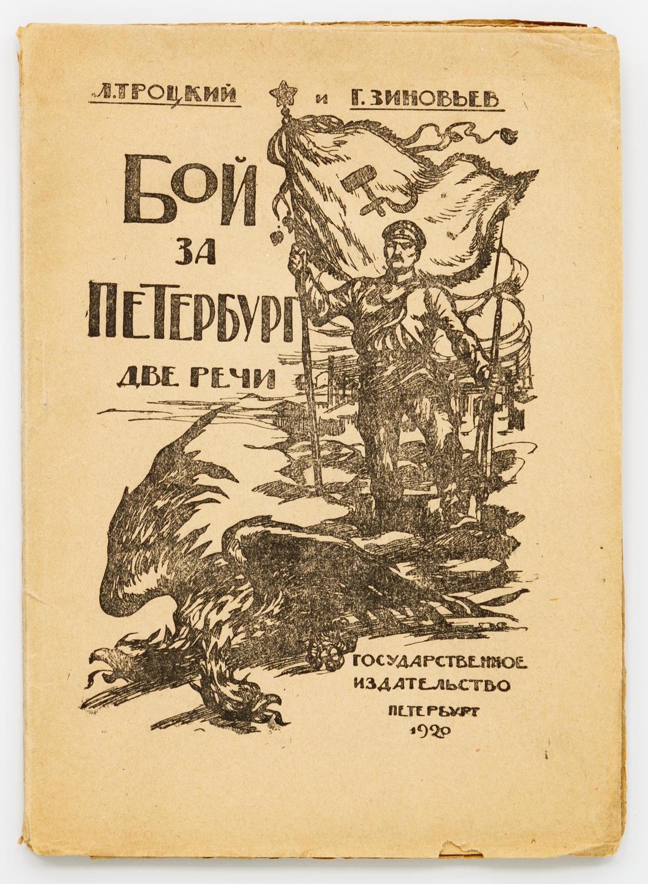 Дубнов, С.М. Евреи в России и Западной Европе. Кн.1-3. М.-П.: Изд. Л.Д. Френкель, 1923. 126, [2], 100, [2], 147, [1] с. 23х15,5 см. В позднем коленкоровом владельческом переплете. Издательская обложка дублирована на переднюю крышку. В книге рассматривается еврейство в России и Западной Европе в эпоху антисемитской реакции с 1881 по 1914 год. Эстимейт: 15,000 — 20,000 Лот №158 Журнал «Авиация и воздухоплавание» №1/1923. Киев: Журнал О-ва Друзей Красного Воздушного Флота Правобережья, 1923. 20 с. 34,7х26,3 см. В мягкой издательской обложке. Эстимейт: 2,000 — 2,500 Лот №159 Троцкий, Л. Зиновьев, Г. Бой за Петербург. Две речи. П.: Гос.изд., 1920. 53, [4] с. 18х13 см. В мягкой издательской иллюстрированной обложке (оригинальный офорт). Эстимейт: 4,000 — 5,000 Лот №162 Бобрищев-Пушкин, А.В. Патриоты без отечества. Л.: КУБУЧ, 1925. Тираж 6000. 140, [2] 17,3х13 см. В мягкой издательской иллюстрированной обложке. Книга о белой эмиграции после революции, ее настроения. Редкая по идеологическим расхождениям с официальной доктриной того времени. Эстимейт: 3,000 — 5,000 Лот №167 Пунин, Н. Татлин (Против кубизма). П.: Гос. изд., 1921. 1 л. фронт., 25 с., [15] л. ил., 1 c. 30х23,5 см. В мягкой издательской шрифтовой обложке. Блестящий очерк известного историка искусства Николая Пунина о творчестве Татлина и его уникальном художественном методе в контексте его связей и самобытности с французским кубизмом. Эстимейт: 25,000 — 40,000