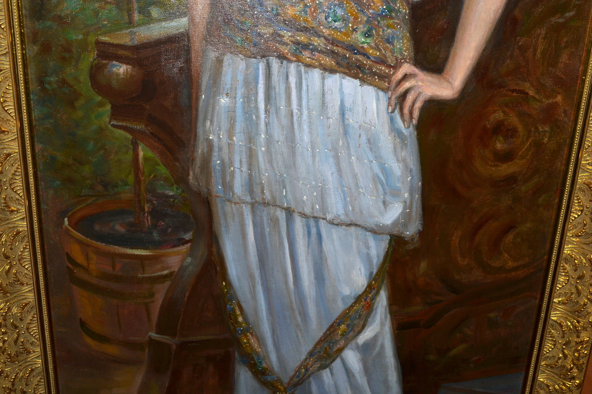 Холст, масло. 177х68,5 см. Справа внизу подпись: «В. Пчелинъ// 1914». Оформлена в раму. Экспертное заключение ГосНИИР (М.М. Красилин, С.А. Кочкин, К.А. Николаев). Имеет музейное значение. Заслуженный Художник Республики (1926). Передвижник. Художественное образование получил в Московском училище живописи, ваяния и зодчества, которое окончил в звании классного художника. Одна из первых серьёзных картин В.Н. Пчелина - "Молодые у тестя" (1892) - сразу принесла известность молодому художнику и была приобретена для собрания П.М. Третьякова. Некоторое время обучался в Императорской Академии Художеств в мастерской И.Е. Репина. До 1917 г. преимущественно писал бытовые сцены из современной ему действительности. Принимал участие в выставках Товарищества передвижников. Октябрьская Революция изменила мировоззрение художника и он обратил свое творчество к историко-революционному жанру: "9 января 1905 года", «Казнь Степана Разина», «Покушение на жизнь В.И. Ленина 30 августа 1918 года», «Перед Октябрем». Советскому зрителю наиболее известными стали картины «Казнь Александра Ульянова» и «Всесоюзный колхозный съезд в гостях у Красной Армии», которые широко репродуцировались в журналах и школьных учебниках. Произведения В.Н. Пчелина представлены в собраниях Государственного Русского Музея, Государственной Третьяковской Галереи. ПРОДАЖА 260 тр. |