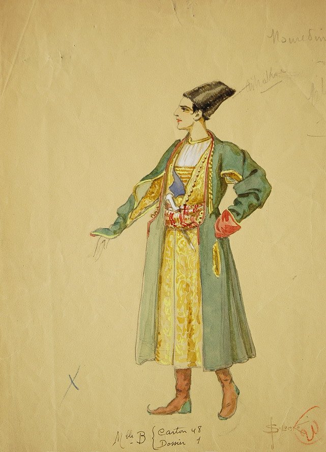 Если кому-то вышеприведённые доводы покажутся недостаточными для подтверждения авторства Соломко как создателя этих открыток, то, последний аргумент окончательно убедит их. Предлагаю сравнить надписи на открытках с надписями на безусловных работах художника ( театральные эскизы). По некоторым буквам, особенно видно, что написаны они одной и той же рукой, что на открытках, что на эскизах.