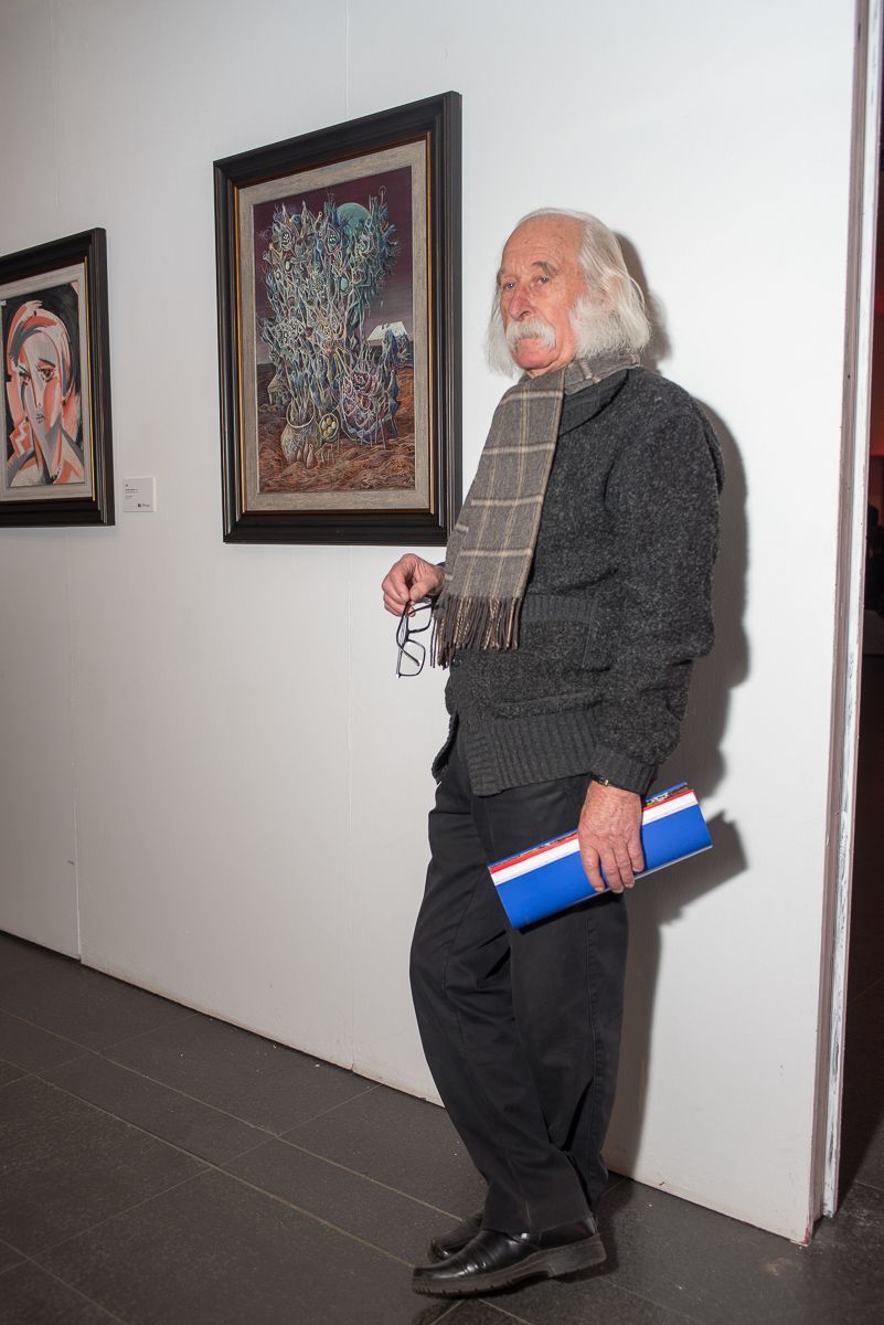 А вот и сам автор на предаукционной выставке рядом со своей работой (топ-лотом аукциона!) «Лунные цветы».