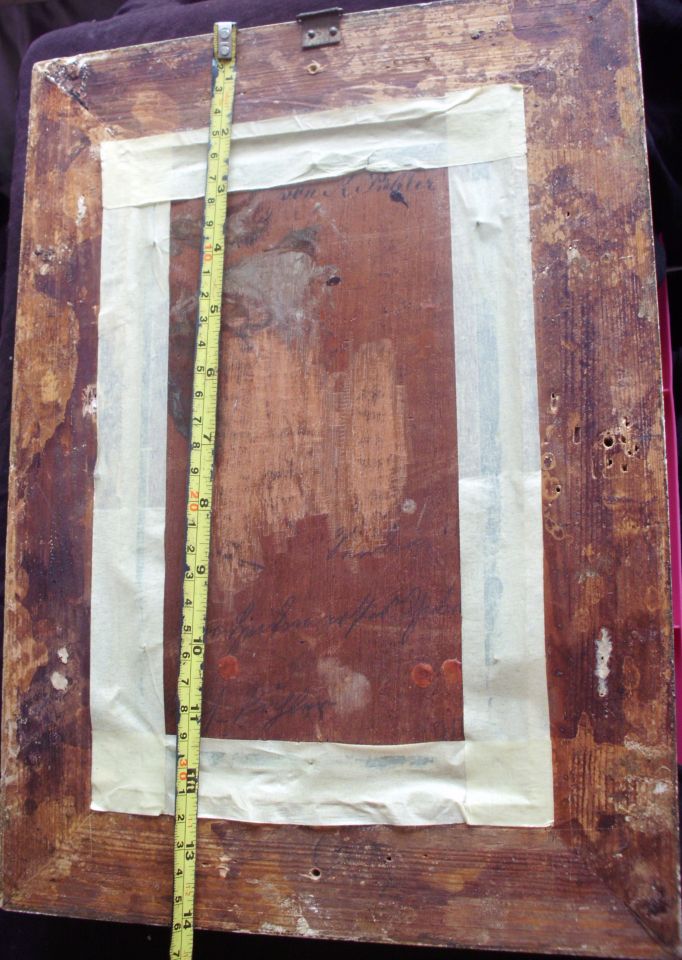 Подскажите, пожалуйста, автора этой странной картины. Масло на доске. Надпись сзади картины не дала результата через гугл.Может, по стилю?