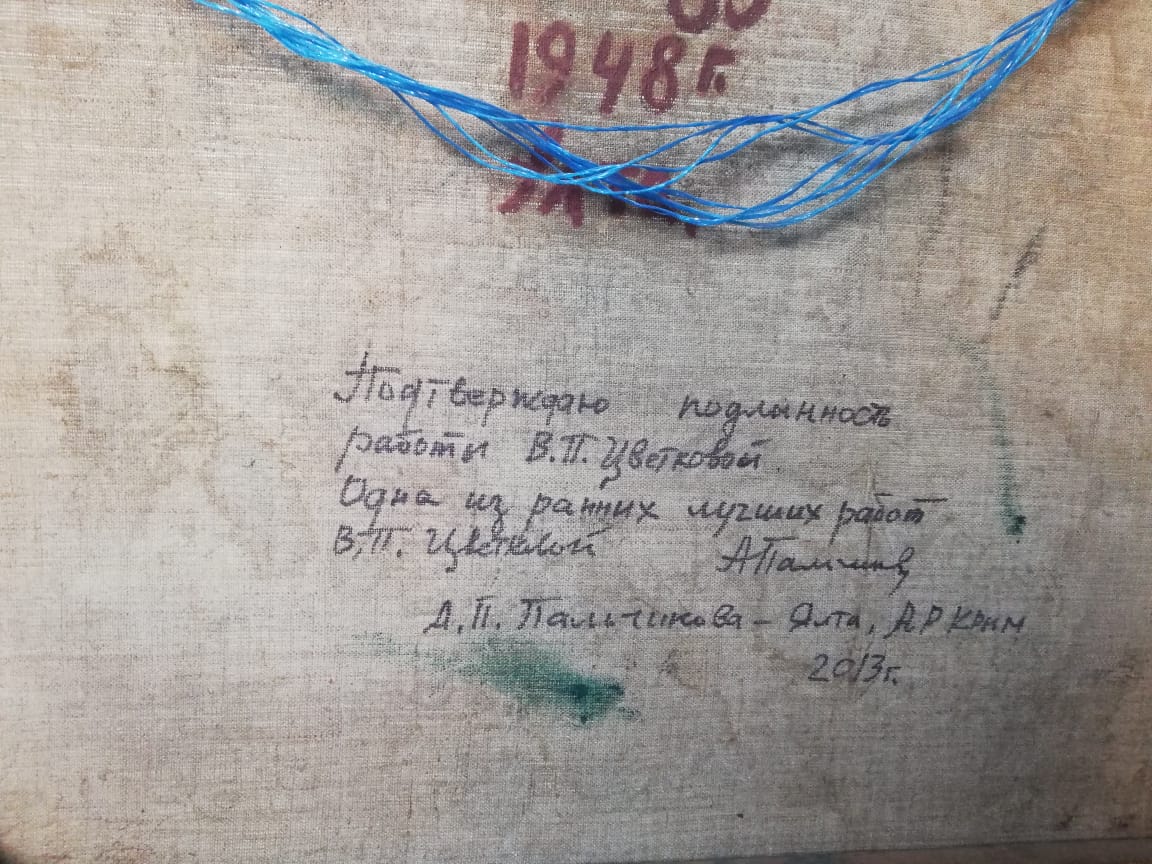 Прошу атрибуции и оценки картины. Натюрморт с розами. Автор Н.Цветкова 1948 год. холст масло 85х75 см.
