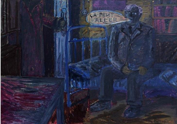 ОЯ. Да, гениально просто, потрясающе. Он себя не исчерпал вот в этой теме. Если б он остался жив здесь, это другое дело. Тогда ,наверное, может быть, он бы приблизился к французской жизни. Ему бы просто надоело эти коммуналки рисовать. Он бы стал клошаров каких-то рисовать, еще чего-то. Ему нравилось рисовать бездомных людей, людей с проблемами.