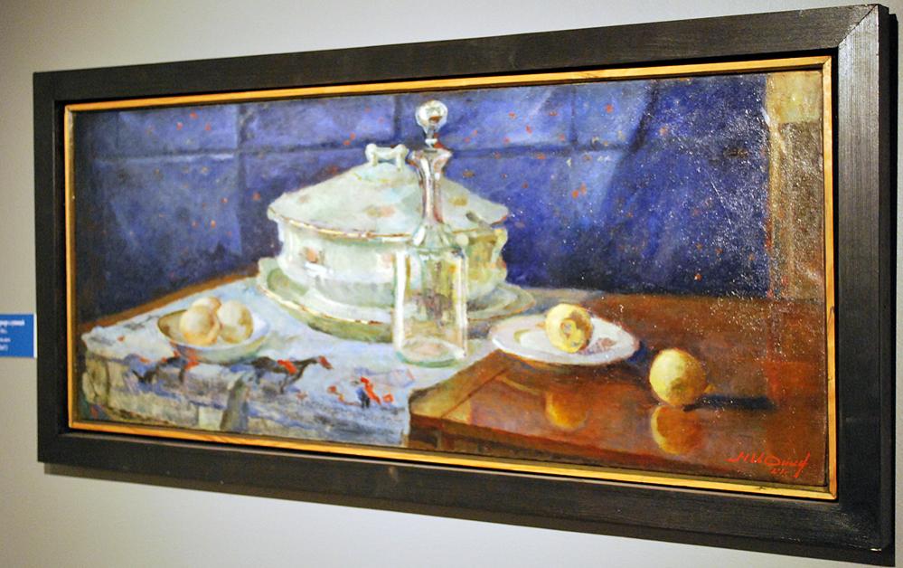1937. Натюрморт с красками 1930-е. Цех бронирования. Этюд №1. Картон, темпера, масло. 1941. Синий натюрморт с супницей. 1946. Автопортрет. |