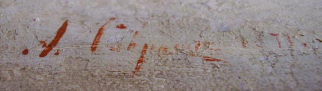 I would have paid attention to the signature, it is as if, plotted on top of already sprinkled with a layer of paint.