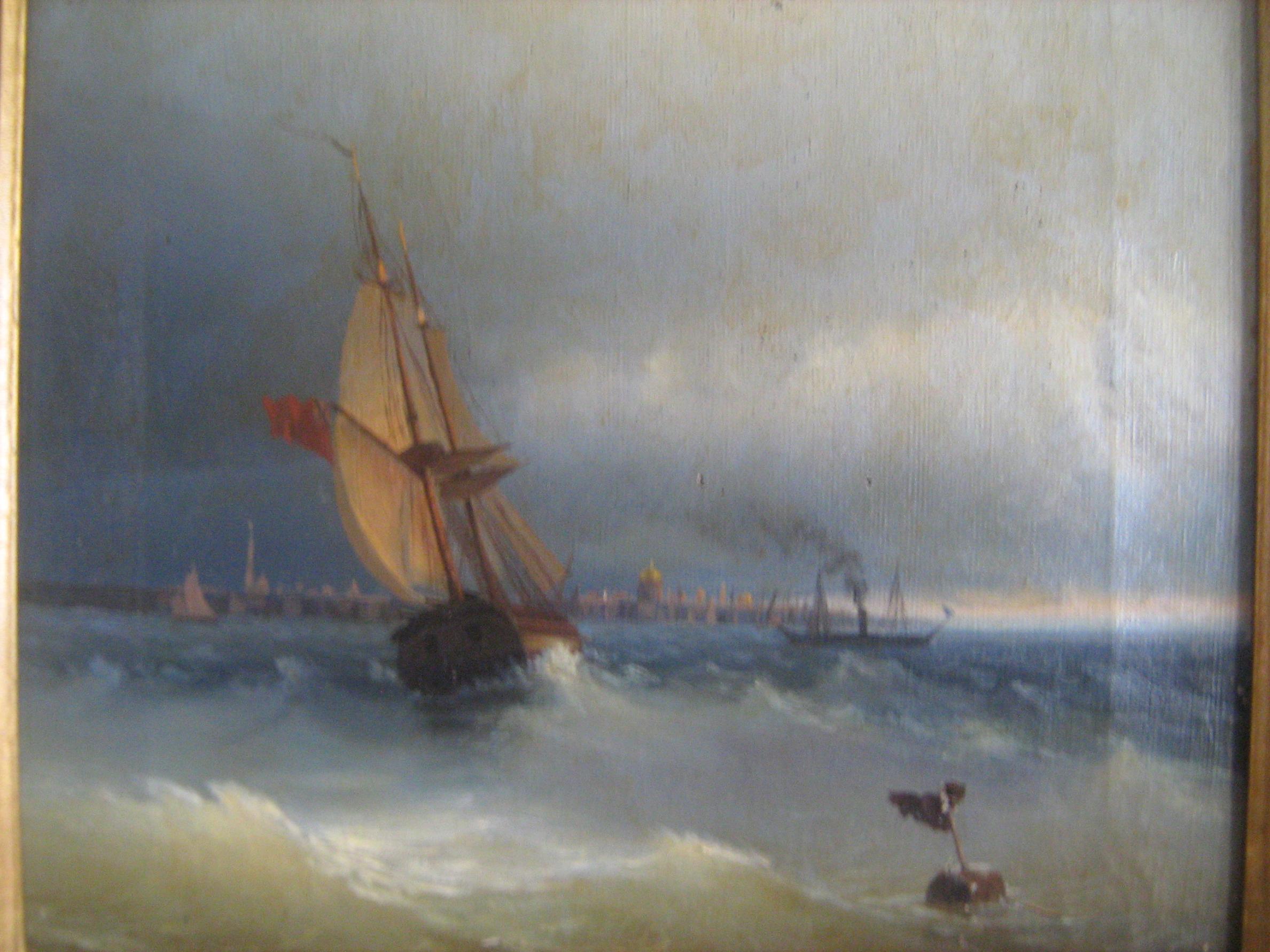 Дениссс, во-первых, качество фотографий!...надо хотя бы увидеть его мазок (это на счет Айвазовского)...а во-вторых, Вам надо обязательно делать технологическую экспертизу...очень много может сказать инфракрасная фотосъемка, так как у Айвазовского характерный первичный рисунок...А так это может быть и А.И.Фесслер и т.д.