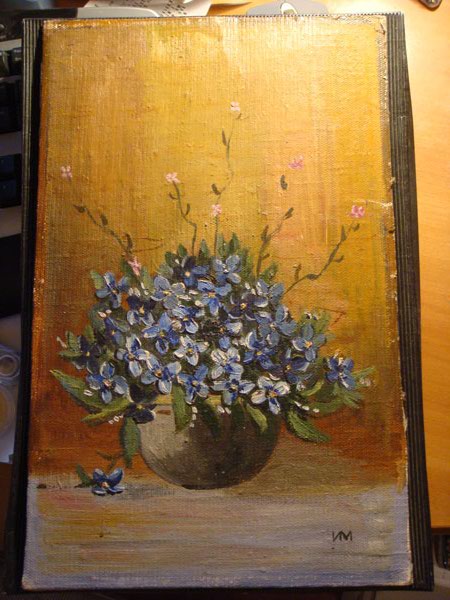 Попалась работа неизвестного художника Мoисеевой(?). Прошу оценить. Масло. Холст на оргалите. Размеры 23х36 см. 1989 год. |