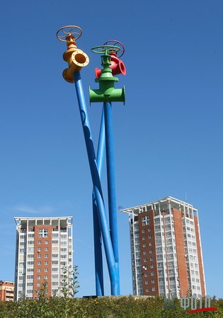 -Memorial running water at the intersection of Peace and Jubilee in Mytischi - "Cat Hippo and cows", he is in the yard of the house number 13 on the streets of the Soviet Army, located in Marina Grove. Leone for Mosfilmovskaya Street |