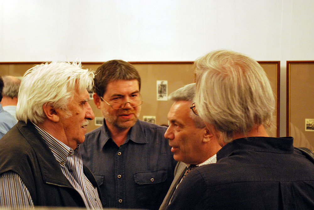 1. Виновник торжества, коллекционер Борис Михайлович Фридман 2. Борис Фридман и основатель ARTinvestment.ru Борис Молчанов. Оба - Борисы Михайловичи. 3. Художник Владимир Немухин, Борис Молчанов, Борис Фридман 4. Художник Владимир Николаевич Немухин 5. Художник Леонид Тишков 6. Куратор выставки Алина Федорович и художник Игорь Макаревич 7. Искусствовед Виталий Пацюков, коллекционер Борис Фридман, художник Леонид Тишков |