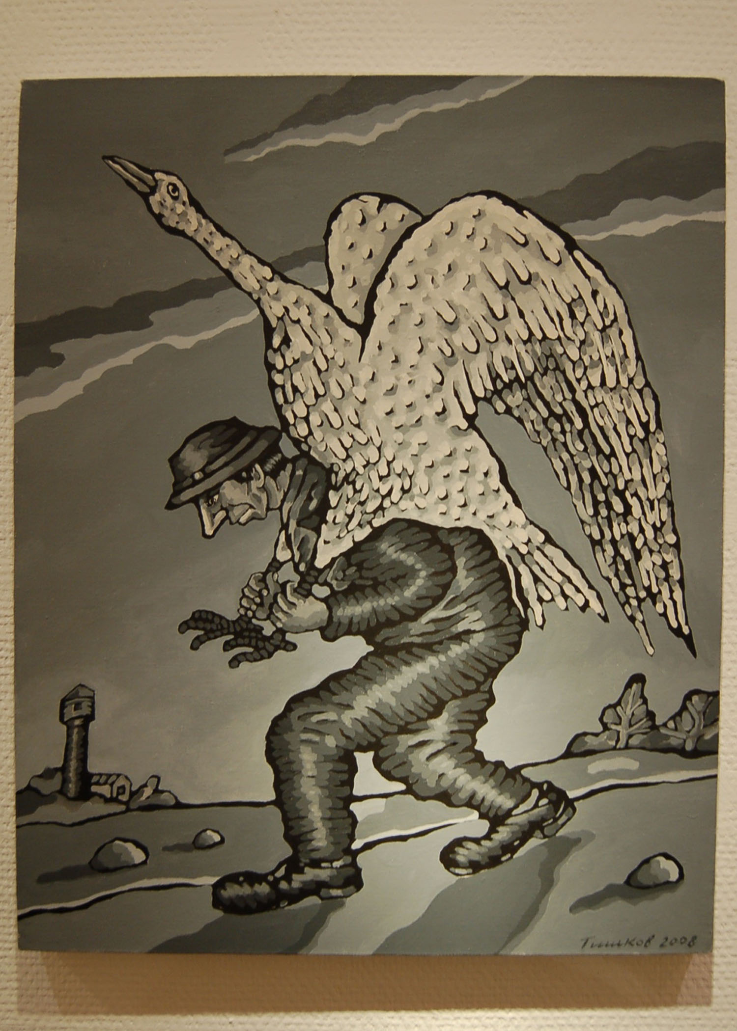 В начале сентября в галерее Крокин открылась выставка Леонида Тишкова "Дом художника". Художник своеобразный, со своей индивидуальной манерой и придуманным мифическим миром водолазов и даблоидов. Все его творчество связано как раз с этими существами, он сочиняет про них истории и изображает на своих картинах.