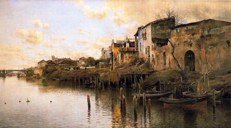 Emilio Sanchez-Perrier studied at the School of the Arts in Seville and later in art school in Madrid. In 1871 he lived in Granada with Martin rico, where he became friends with Mariano Fortuny. In 1879 he moved to Paris and studies at the studios of Auguste Bolard, Leon Gerome and Felix Ziem. His paintings are displayed at various group exhibitions. In 1878, the exhibition of the National Society of Arts in Madrid, in 1879 at Cadiz regional exhibition, where he was awarded a gold medal, in 1880 at the Salon des Artistes Francais, received a commendation, in 1886 the silver medal at the Exhibition Universelle. In 1889 he became a member of Seville fine art academy. Emilio Sanchez-Perrier wrote genre landscapes, architecture, and water scenes. Emilio Sanchez-Perrier - known for his scenic paintings of Venice, which show great promise of this European city. Romantic, atmospheric style and Sanchez-Perrira in painting is very popular, his works are in private collections and museums from America to Europe. |