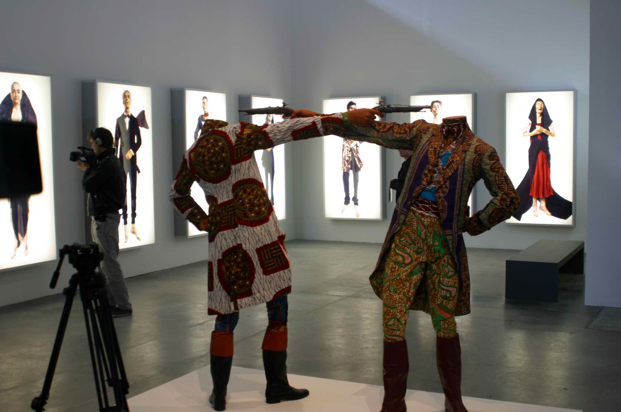 1. Комната вся затянутая на всю глубину чёрной ниткой, на фотографии получилась как нарисованная 2-8. Сетчатая труба где на дне насыпан песок. стоят азиатские фигурки и ползают рептилии, в основном черепахи. а вот под горбиком - столик, который я по началу пропустил, но обратил внимание когда группа молодых людей что-то стала делать. Оказалось круто. По периметру столика расположены ящички в которых сидят всякие гады: пауки, скорпионы, тараканы, ящерицы. И молодая девушка как раз привезла очередную партию этих существ. Разговорились. на вопрос что это значит? Сказала, что не знает так как исполнитель, какой-то японец нанял её. А у неё цех по разведению этих животных. Совершенно без страха брала в руки самых ужасных пауков и сажала их в ящички. а потом сказала что самое интересное происходит в 17-00, тогда открываются все дверцы и гады выходят на свободу внутри стола и начинают пожирать друг друга. Я решил не смотреть. 9. Это не макеты рубанка и кроссовка, а гробы. У этого художника бизнес такой - он делает тематические гробы для людей их специальности. Для плотника в виде рубанка и т. д. 10. Жуткая комната, главное в которой не безголовые дуэлянты, а картины на стенах. Там фотографии покойников наряженных в разные одежды. Не стал близко фотографировать - жуть. |