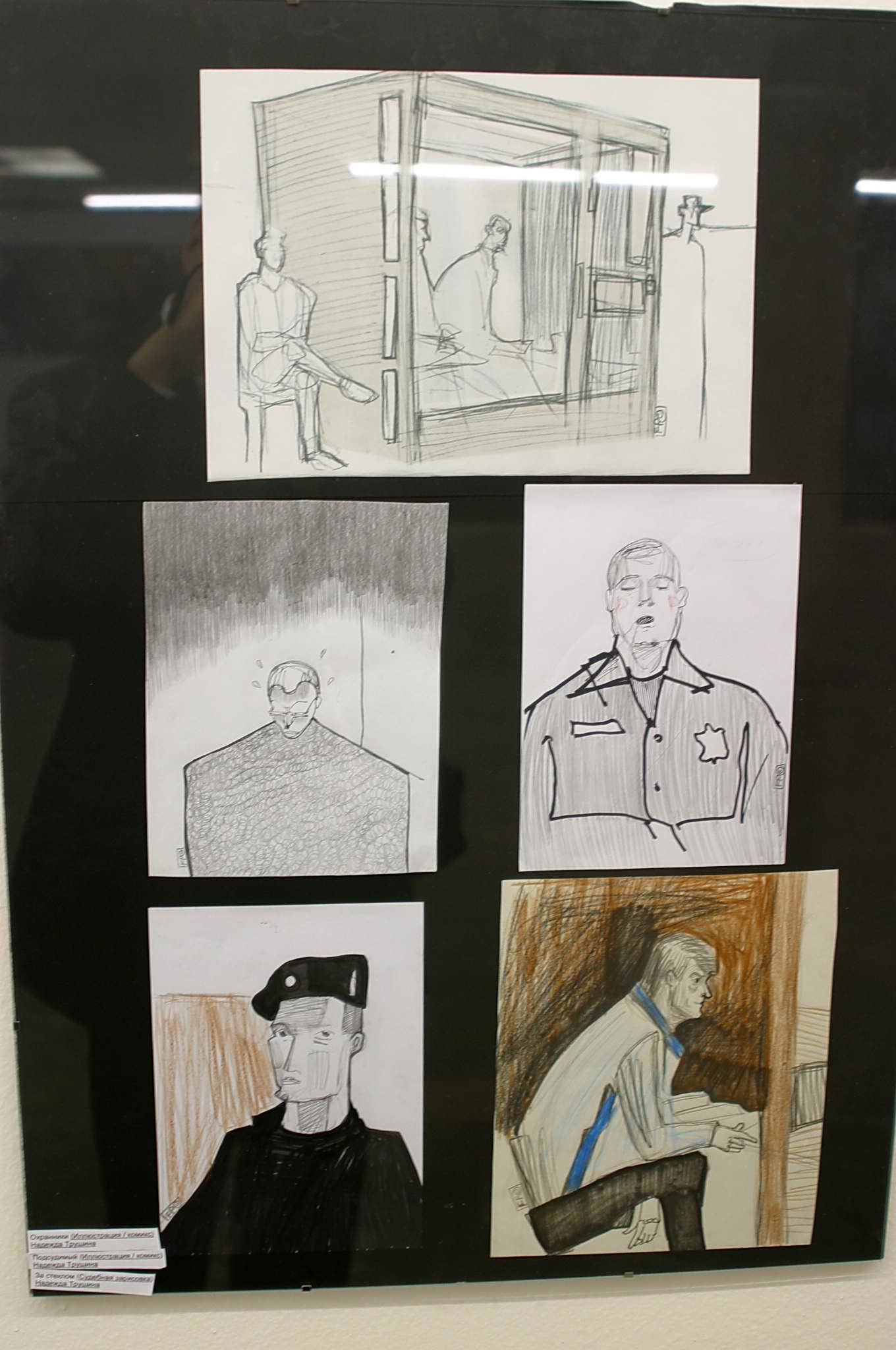 This is a competitive exhibition of works on the topic "Drawing the court." One of the organizers is the Sakharov Center.