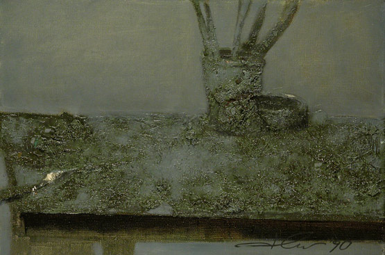Одна из работ Фомичева очень меня поразила своим сходством - и по колориту, и по употребленным материалам - с работами Рогинского 1989-90 гг., вот эта:
