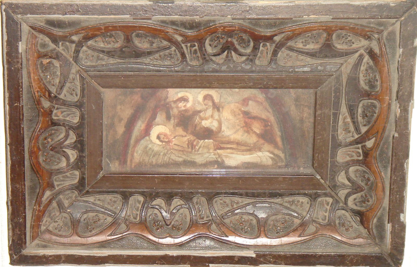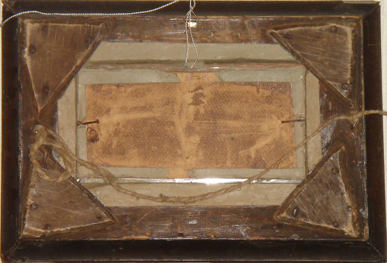 For sure the frame is old baguette cut which, as now collected in the frame, is the coincidence of the ornament nobody zabotitsya.Na joints was putty which crumbled. My opinion is that when the sticks with a pattern to the cardboard, then assembled the frame, ie early 20 th century and of course not personally Vrubel.