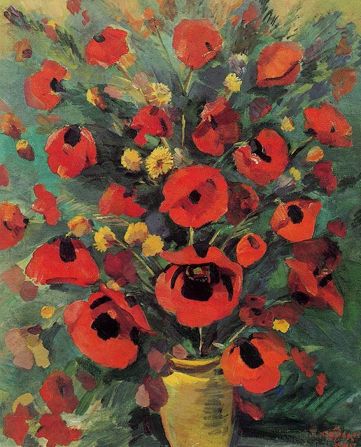 Работа же Сарьяна «Лотос», на которую ссылаются эксперты ГТГ, никак не может служить доводом в пользу подлинности рассматриваемой нами картинки. В «Лотосе» отчётливо просматривается та манера Сарьяна, которая будет свойственна произведениям художника, созданным им в течение всей своей последующей жизни. Обратите внимание на то, как художник изобразил цветок. Он состоит из двух крупных цветовых пятен – белого ( лепестки) и жёлтого (сердцевина). Именно эта цветовая лаконичность и условность формы в изображении объекта будут характерны последующим работам художника. Если сравнить одну из поздних работ мастера – «Маки», 1958 г. , где бутоны распустившихся цветов являются центром композиции, занимая основное пространство произведения, так же как и бутон в работе «Лотос» 1911 г., то мы увидим, что художник по прошествии времени остался верен своей манере и изображает цветы при помощи двух-трёх крупных цветовых пятен, сводит к условности изображение формы, но при этом точно передаёт пластику предмета.. Приведённая Вами работа совсем не согласуется с этим изобразительным принципом Сарьяна. Возможно, у экспертов ГТГ есть неопровержимый аргумент в пользу подлинности представленной Вами картинки, но в силу уникальности случая, они должны были указать на то бесспорное произведение, опираясь на которое, они и пришли к своему заключению. В противном случае их экспертиза неубедительна. Привожу три десятка работ Мартироса Сарьяна, на которых он изобразил цветы. Основной упор делаю на работы 10- 20- х гг. Последний раз редактировалось Тютчев; 08.01.2010 в 07:46. |