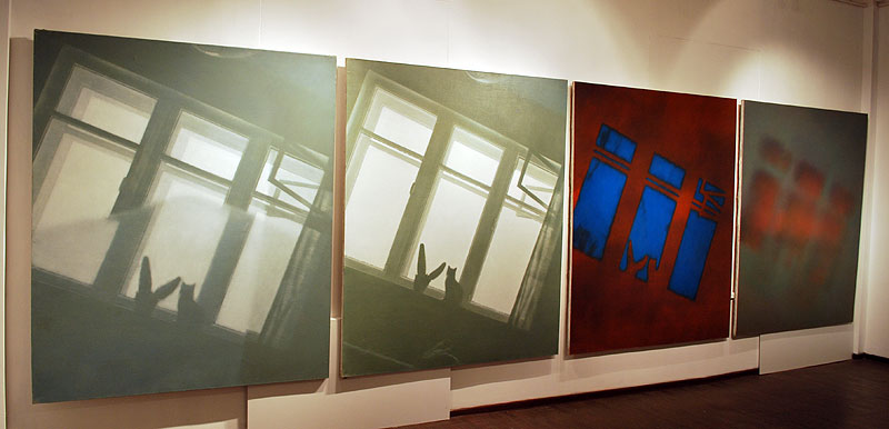 О чём речь? Последняя серия картин про бомжей - это большие изображения/фотографии напечатанные на холстах. При этом фотографии разогнаны до появления "пикселов", всё с грубыми переходами цвета и размыто. Для чего я так подробно описываю? Да потому что когда такое разогнанное изображение снова фотографируешь и потом смотришь его маленьким, вот как сейчас у вас на экране, то возвращаешь весь процес в начало и на выходе - просто фотография, что мы здесь и видим. Созданный эффекат живописи исчез. Повторяю вопрос: - это важно? Главное не техника, а мысль, скажут искушённые ценители современного искусства. Так ли? Мне не понравилась новая серия. Ни техники исполнения, ни сюжеты (смотреть на опустившихся людей не самое лучшее удовольствие) ни, самое главное, энергии. Ничего не исходит от картин. Так бы и ушёл разочарованный если бы не завернул за угол одного из коридоров. Картины 90-х - совсем другое дело. И сюжет, и техника и энергетика всё есть. Надеюсь Владимир выложит, обсудим по живому. О пока писал это уже случилось. |