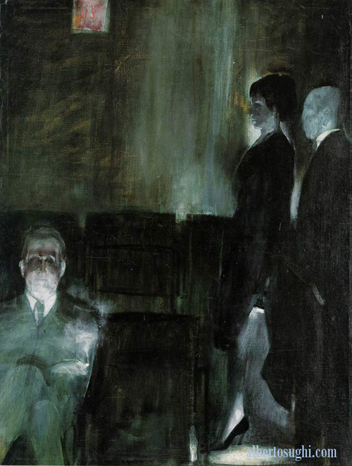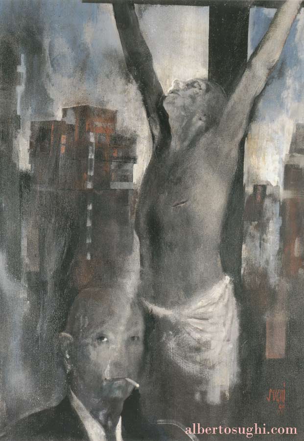 Некоторым критикам, которые считают его картины тех лет как депрессивные и мучительные Альберто Суги отвечал: "Начиная с моих первых выставок в Риме в 50-е годы, я сделал любопытное открытие о моих работах говорили, что они грустные и унылые ... Но я никогда не использовал серый цвет для придания печали и розовый для надежды. Когда рисуешь, ум и рука действуют с целью и решимостью. Цель живописи не разжалобить, а представлять ". В те годы было принято говорить об Альберто Суги как о реалисте, Antonello Trombadori ставил его в один ряд с Эдвардом Хоппером. |