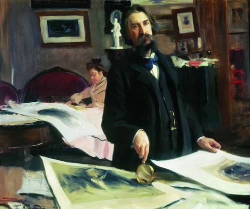 Repin has attracted the young artist to co-authorship in the film "The meeting of the State Council" (1901-1903, RM). Already in these years, manifested Kustodiev virtuoso talent as a portrait ( "Portrait of Ivan Bilibin, 1901).