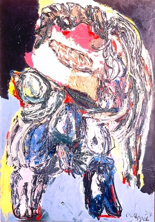 С 1940 по 1943 г. он учился в амстердамской Академии Изобразительных искусств. Его первая выставка состоялась в Гронингене в 1946 г. В раннем творчестве Аппеля заметно влияние Матисса, Пикассо и Дюбюффе. 8 ноября 1948 г., во время посещения Парижа, сидя в кафе Отеля Парижской Богоматери, Аппель и его друзья-художники Дотремон, Нуаре (Бельгия), Йорн (Дания), Констан и Корней (Нидерланды) решили создать группировку КоБрА Немного позже к ней присоединился Пьер Алешински. Манифест КоБрА был близок к манифестам Жана Дюбюффе: как и он, художники этого направления отрицали рационалистические традиции в искусстве, восхваляли искусство «примитивных народов» и аутсайдерское творчество, относились с симпатией к движению дадаистов. В это время Аппель делал близкие к экспрессионизму «объекты-помойки» из найденных на свалках предметов. |