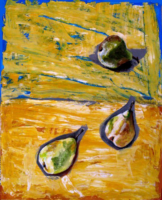 Пикассо писал свои странные портреты с натуры,как и натюрморты. Люся Воронова вот пишет,что все ее декоративные портреты тоже всегда с натуры. Мне тоже хочется писать с натуры, особенно многофигурные композиции. Тренеруюсь на цветочках и грушах. 1.Подсолнухи. Сам посеял,сорвал и запечатлел. Очень нравится. Хотел еще,но подсолнухи уже созрели. 2.Груши. Московские,акрил. 3. Груши киевские, со старого дерева. Эмаль. |