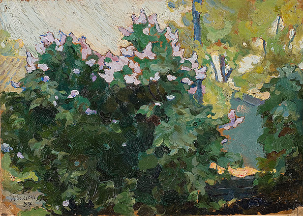 1.Белоусов П.П. Сиреневый куст. 1937 Фанера, картон, масло 16х22 2.Окс Е.Б. Сирень. Начало 1960-х Холст, масло 45х35,5 |