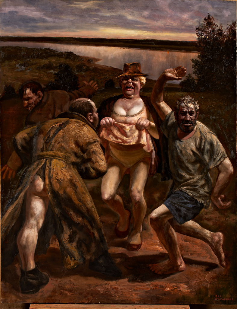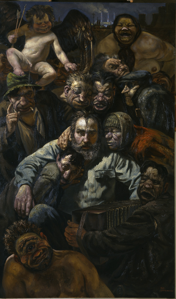Не один художник не стал бы изображать любимого человека, любимый город, любимую страну, в такой форме. К примеру, пишет образ/прообраз своей любимой супруги, голой, в грязной луже, со стаканом самогона в руке и в обнимку с чумными мужиками. Вот тебе, твой портретик.........., в подаaaaaaрок любимая! ![]() ![]() ![]() С другой стороны, тема самобичевания себя медленно и уверенно исчерпывает. Этот гнусный и будоражащий мир создали сами люди, которые в нём жили и живут. Прилив энергии базирующийся на злорадстве и улюлюканье от изображения гадостного, из прошлого или настоящего, со временем, у реально мыслящих людей, стремится к нулю. Эта энергия больше не производит вспрыск гормона счастья, трезвая голова начинает понимать, что от улюлюканья мир красивше вокруг не станет и что "как потопаешь, так и полопаешь". A на нет, и суда нет