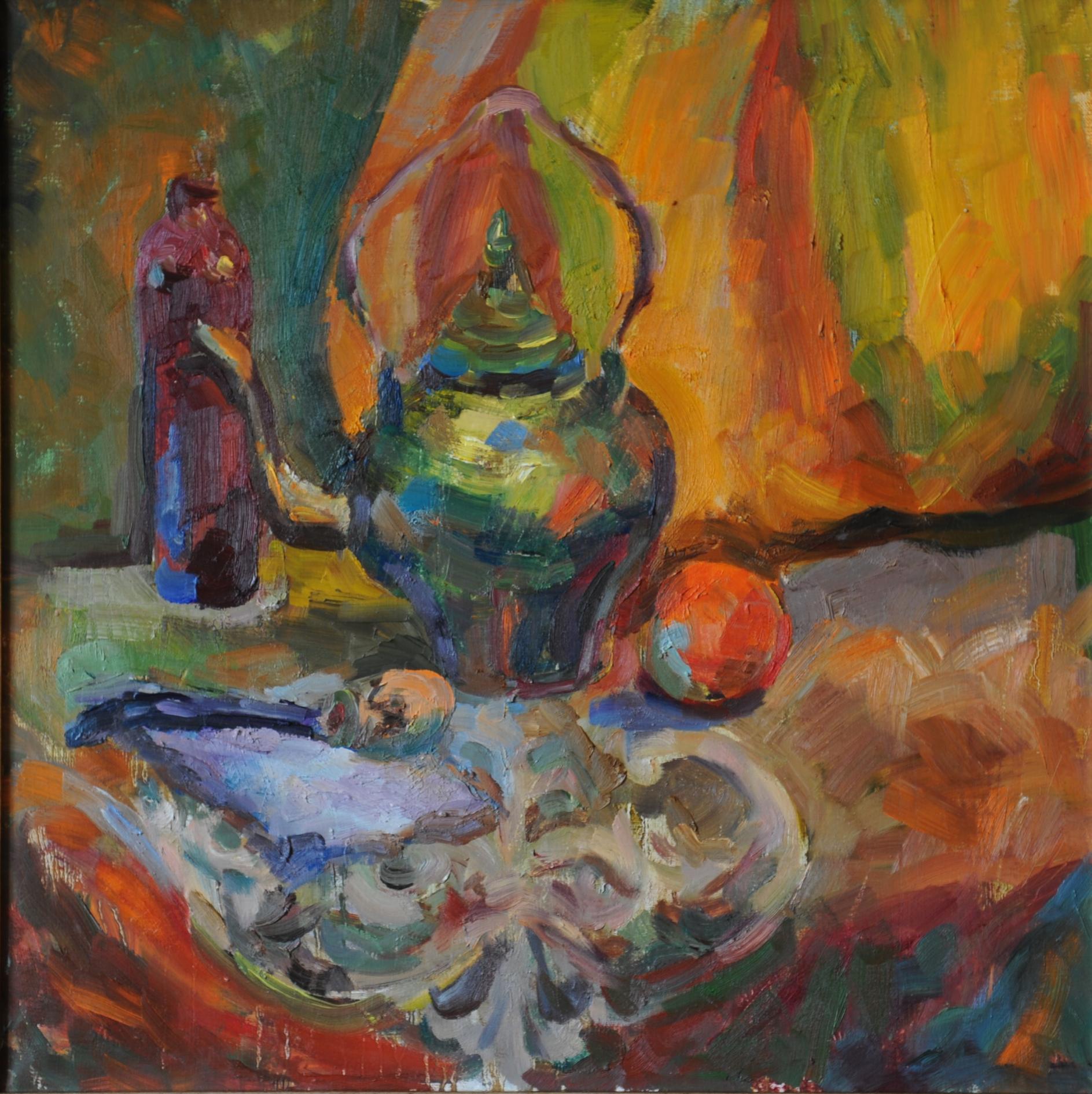 1 Самовар с чайников. Х.м. 80х70 см 2011г 2 Тыквенное поле. Х.м. 80х70 см 2011г 3 Хлебный натюрморт Х.м. 60х70 см 2011г 4 Русская полка. Х.м. 70х60 см 2011г 5 Натюрморт с трубкой. Х.м. 60х60 см 2010г 6 Осеннее изобилие. Х.м. 70х80 см 2011г |