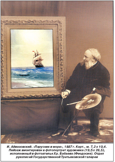 Lot 1437 IVAN CONSTANTINOVICH AIVAZOVSKY (Russian, 1817-1900); Mixed media with oil on photograph mounted on panel of the artist's self-portrait painting a seascape (framed); Signed; 12'' x 9''; Note: A postcard created by the artist for friends on the occasion of his birthday Estimate $ 5,000 - $ 8,000 Personally, I've circled these cards, walking across a network, a lot. Thank you in advance for your reply. |