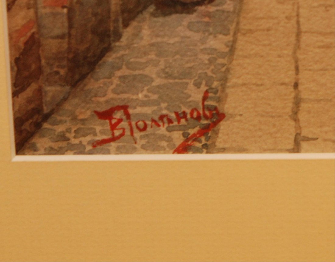 Lot 71 VASSILI POLENOV WATERCOLOR ON PAPER OF ALLEY Vasili Dimitrievich Polenov (RUSSIAN, 1844-1927) watercolor on paper depicting an alley way scene with people. Signed lower left. Measures 11 1/2'' height x 7 1/2'' width + 4" mat and frame (29.2cm x 19.0cm + 10.2cm). Estimate $1,000 - $2,000 |