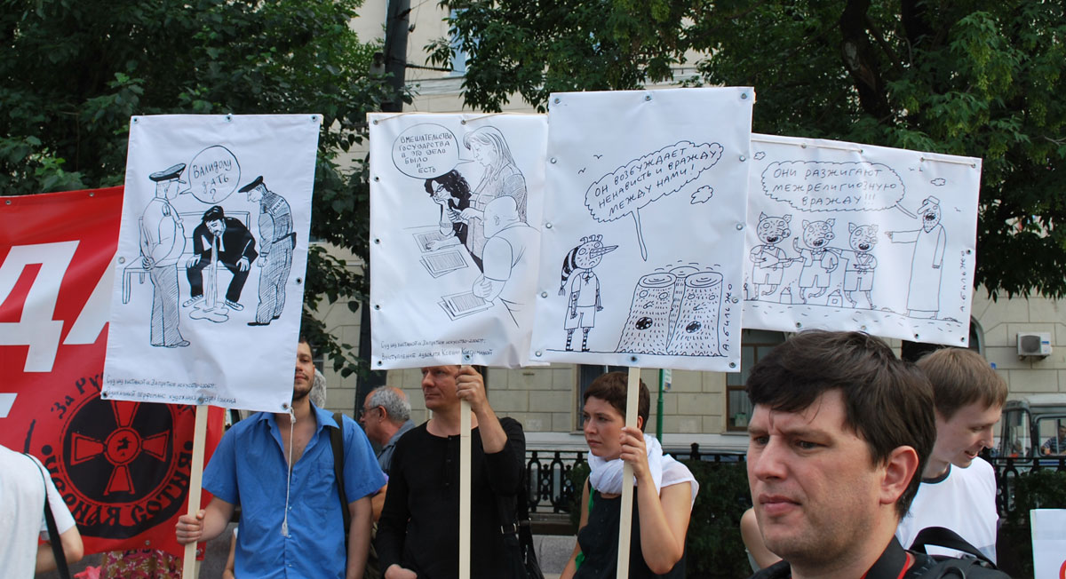 Publishing photos from the rally in support of the organizers of the exhibition "Forbidden Art" by Andrei Erofeev and Yuri Samodurov, which was held today, Friday, near the metro station "Pure ponds". Impressions - later. Better to ask questions.