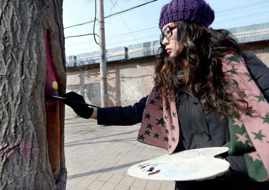 Рисунки на деревьях, поднимающие настроение горожанам В китайском городе Шицзячжуан 23-летняя студентка Ван Юэ (Wang Yue) рисует на стволах деревьев, на радость жителям. Все ее рисунки – это животные или пейзажи. В своей работе она преследует одну цель – сделать улицы города ярче. Городские власти ее идею одобряют, а общество по охране природы подтвердило, что краски не приносят вреда деревьям. Ван Юэ очень ответственно относится к своему делу. Она тщательно выбирает будущий «холст» – дерево, на котором не хватает коры, – и продумывает, что лучше будет смотреться на этом месте. Юная художница намерена продолжать начатое, несмотря на загруженность на учебе. |