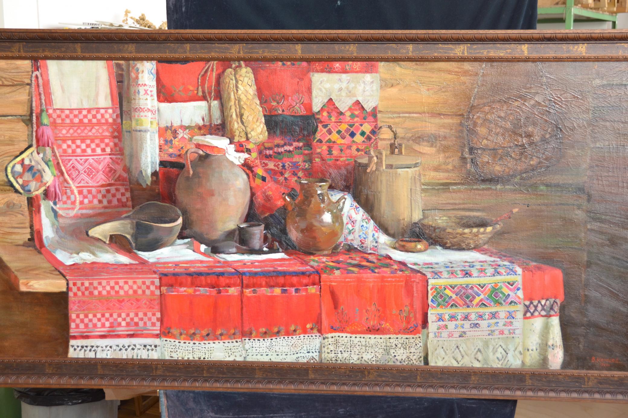 Слева ковш нарисован плохо. На кувшине, к-й в середине - пятка белые (типа блик). |
