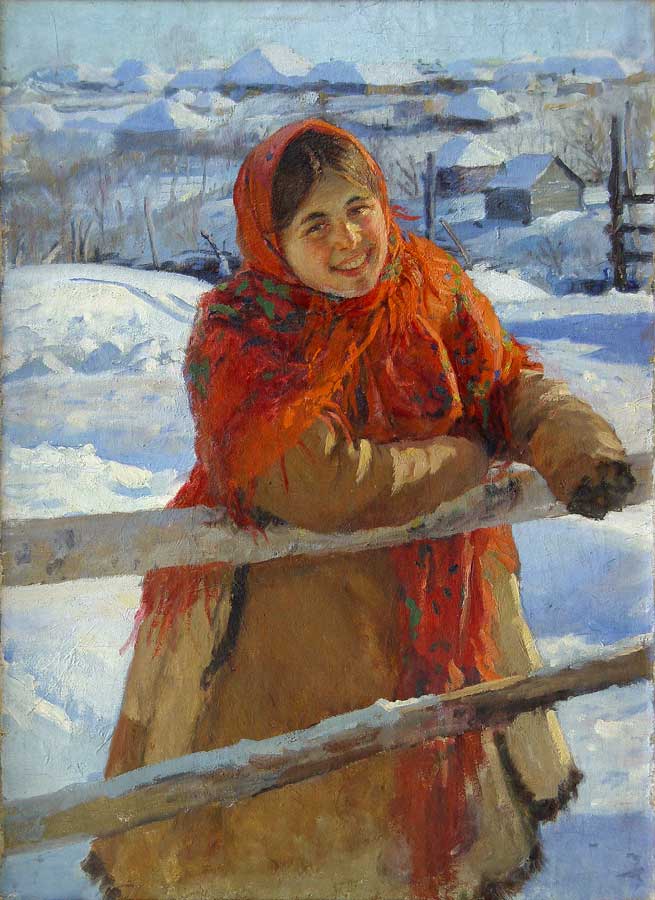 Well, at least this young lady dressed in a village and not in the street near the fence, and her smile was not very happy.