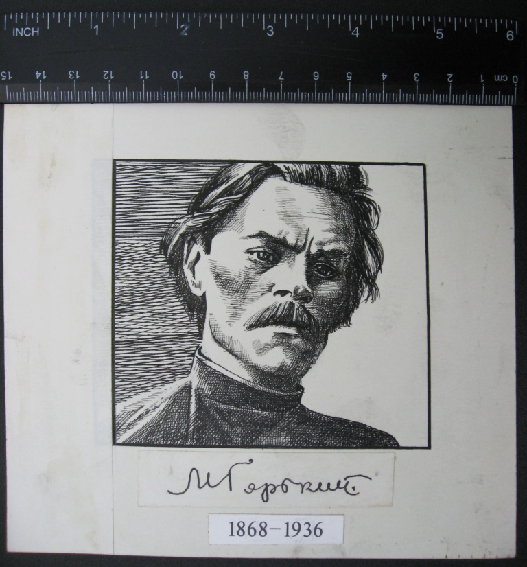 1913—1914 — «Детство» 1915—1916 — «В людях» 1923 — «Мои университеты» Бумага/тушь,перо. Размер на фото. На обороте штамп, название произведения, автор, утверждение к издательству. Другие три листа примерно размер формат А4. Бумага/тушь, перо. |
