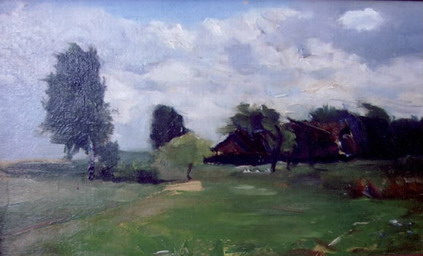 По крайней мере подпись на Вашей картине не похожа на известные подписи Ромаса. В том же справочнике Соловьёва она другая, без инициала и наклон в другую сторону. Вот сравните, это Ромасы настоящие: Хотя дарственная на обороте - вполне Ромас! Может подарил работу другого автора?