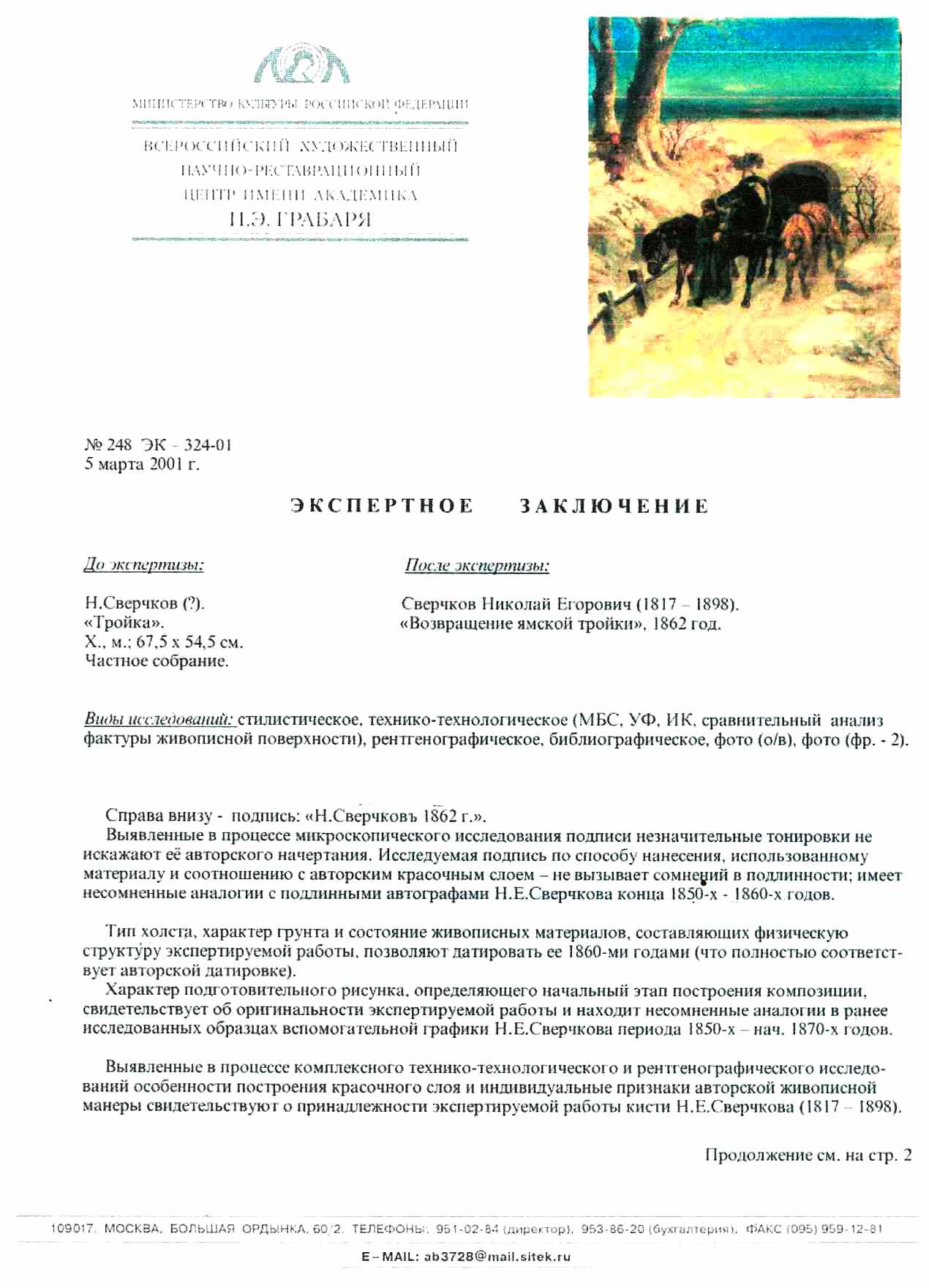 At the last auction http://www.bruun-rasmussen.dk/index.do work Sverchkova similar size "Troika in Winter" was sold for 17,000 euros, look for trades archive 2.12.2013g.