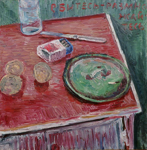 ---------------------------------- - Картины вы часто сопровождаете ироническими надписями типа "Днем на главных улицах много народу", "Со следующего года обещают повысить" или "Москва - это прежде всего дворы, улицы, переулки".... Михаил Рогинский :"... Надписи появились у меня сразу. Они нужны, чтобы снять картинность с картины, сделать ее больше похожей на плакат. Я люблю живопись, но у себя ее без контрапункта не выношу. В свое время я мечтал писать так, как в МОСХе, но только изображать очередь, пьяниц, падших людей. Меня все это интересовало не столько в социальном смысле, сколько в эстетическом. Я пытаюсь сопереживать тому, что изображаю, но никакой "литературы" в этом нет..." http://sem40.ru/culture/art7382/7468/ 1.Михаил Александрович Рогинский 2-10.Картины, автор М.Рогинский. Последний раз редактировалось Евгений; 21.07.2010 в 20:16. |