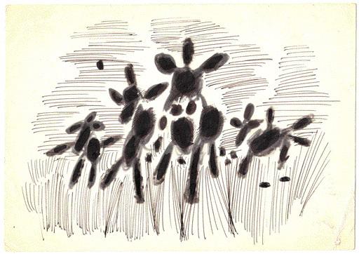''ICE BOOK " Publisher Izvestia suggested Hulot illustrated book Lenin Prize Johan Smuul "ice book". It was a very honorable job. In connection with the growing popularity and the large number of proposed orders Hulot tried to find more productive ways of working. For example, working on "Ice Book", he came up with this: painting on glass, creating just the negative, from which you can make a positive image. He took in this case, for example, the method engraving. On another occasion, he made several engravings of impressions, so as not to draw a few times ink drawing. And after that handles watercolor and gouache, looking for the best, colorful solutions. Finally, figures for "Ice Book" were ready, and I had to myself Johan Smuul confirmed their agreement. Hulot rushed to the native Tallinn, Smuul to the hospital. Johan Smuul liked the pictures, he endorsed, and Hulot's hoping that it will not be the last work together. In Tallinn Hulot had visited and a furniture store, brought us the most expensive wall in our new apartment. They Tennochkoy constructed bookcases, shelves for dishes, for TV and radio. Everything was beautiful, even elegant, and Hulot promised me to write new pictures for our comfort. Meanwhile Hulot breathless from work. He already nebegal for publishers, the editor found it themselves, and now he could choose.