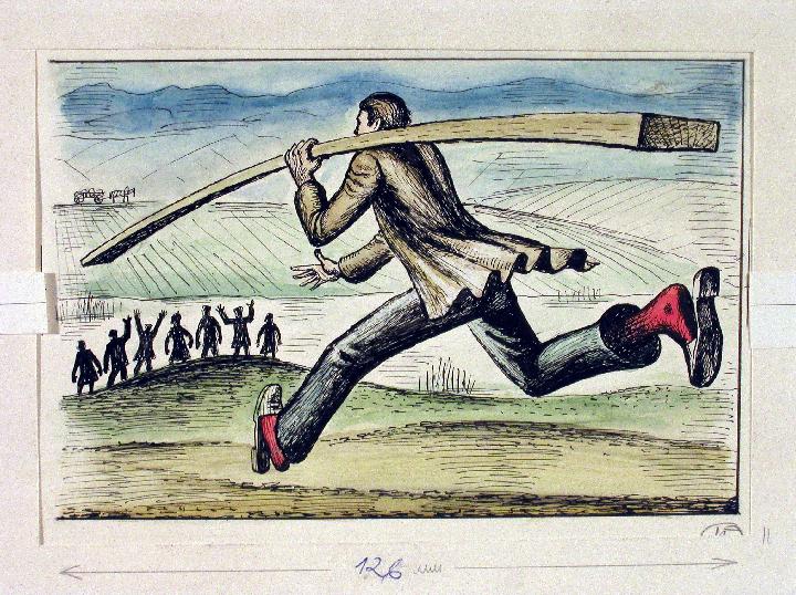 "glass harmonica" In February 1968 in the journal Children's Literature "was released a reversal of Hulot, with his photograph. Article written Viktor Pivovarov. He recalled how he first got into the studio and was amazed at the fantastic Hulot disorder, but on the other hand, the strict rhythm of things and thoughts expressed by an extremely simple and strong as a bell. Hulot was very pleased with the article, he walked, he rubbed his hands, and said: "Here, he lived, at last!". He was grateful Vite for this article, for the fact that he had been assessed. Director Andrei Khrzhanovsky proposed Hulot make cartoon "Glass Harmonica" scenario Shpalikov. The composer Alfred Schnittke. The second artist was Yuri Nolev-Sobolev. The film was released in 1968. The art historian Irina Myagkova later wrote about this film in the "Decorative Arts": "Ruler, faceless correct administrative robot-man, machinery, trying to turn off the sun, immerse people in the dark cave, let the will of the dark passion. In the absence of light, people turned into monsters in Goya's grotesques and Bosch. Fine art savagely destroyed, the clock on the square overwhelmed, and reverse time, carried with them running wild and people, and the city. The town was turned into a dark maze of stone not covered either by nature, no music, no beauty. City Zamyatin and Orwell. The little harmonica becomes a powerful body, under the wonderful sounds of music Schnittke all alive, all soars in a colorful, sunny sky. The struggle of light and darkness. " Film editor A. Snesarev was a man of vision. He understood the significance of the script, director and all brilliant. Thus was created a film that went into the golden fund of the Soviet cartoon 60's - 70-ies. It so happened that the daughter of Arcadia Snesariev, Hope, became the wife of Tenno Sooster. No one then could foresee a reversal of political events. Premiere filmaprishlas on Czech events. Any manifestation of free thought were immediately stopped, and the film has been shelved. Andrew Khrzhanovsky unexpectedly, in spite of age, called on the army. He had to serve as a lieutenant in the Navy. All thought it was a punishment. And the film has been shelved, where he spent twenty years. Returning from the army, Andrew could only secretly to show the film at the studio and sometimes at their evenings in various creative unions. Hulot, made a second film with director E. Hamburg, who invited him to art director. The film was called "Beware of wolves!". Hulot is not like the movie theme, and it is with great reluctance, only because of the straitened circumstances, has agreed to work. The only success was an excellent group to pick up for work on the film. Hulot very ashamed of this movie and did not want one of his friends to see. In life Hulot was rather eccentric, and in the studio, he did not change their habits. He paced the studio barefoot, once put his face and hands in a photocopier, smoking where not allowed. The company gathered on the film is warm, both for work and for drinking. Hulot is influenced young artists and animators in the sense of avant-garde views on art and creative freedom. Sooster LI My Sooster. - Tallinn: Avenarius, 2000. - 176 pp. «The glass harmonica." Animation: http://mults.spb.ru/mults/?id=1292 |