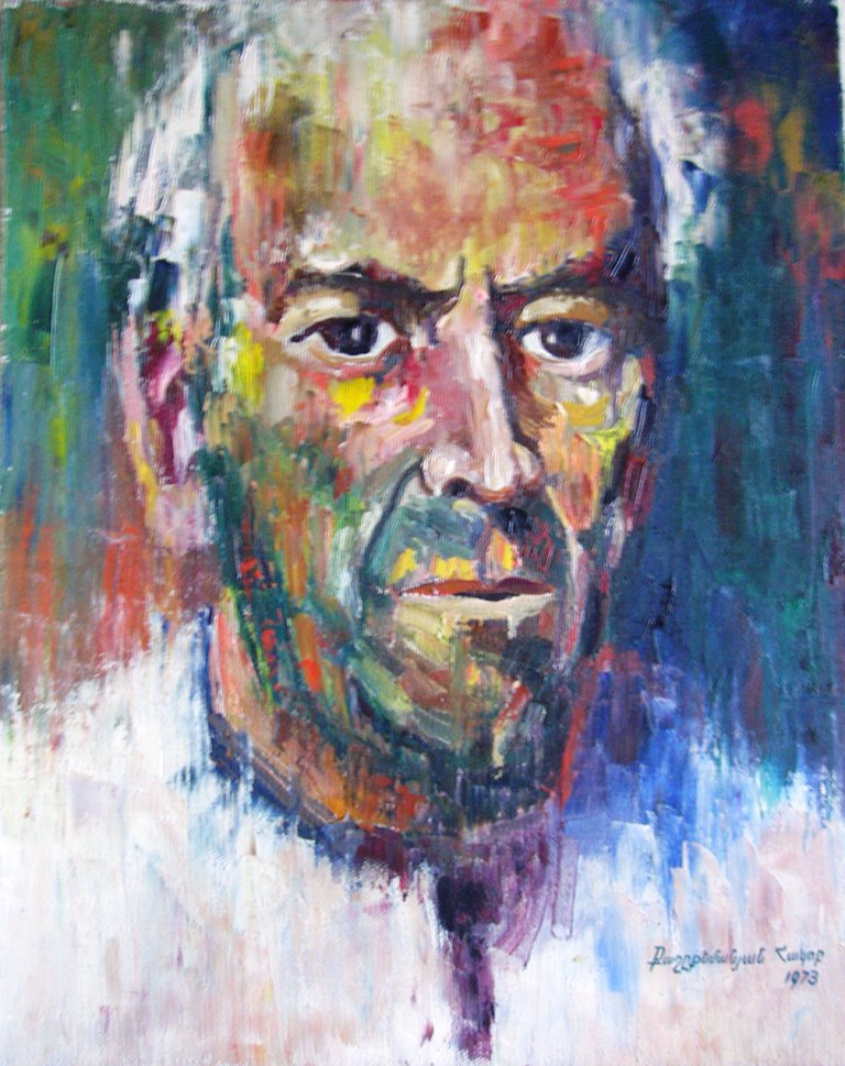 And work is in your archive? Добавлено через 9 минут Artist at all times Vruyr Galstyan While all around us created myths and legends about the mediocre sham heroes and right-left richly rewards distributed, awards, titles, Vruyr never received even the initial titles. Truly legendary figure to remain in their one-room "chamber" (otherwise you will not name the closet area of 19 sq. Meters) with his wife, two children, in space, completely clogged with household utensils, with many paintings on the walls, window sills, over and under the beds ... With great difficulty I managed to cajole the studio just a great painter. At the first visit to a small room, my attention was attracted by a small still life, which still retains its artistic merits. He looked somewhat unusual. At awkward downed stretcher stretched sacking, clumsily stitched together from several pieces, which depicts an ordinary kettle. Everything is simple and amazingly deep and beautiful. Perhaps someday a small still life with teapot will exhibit a two-way, and to demonstrate true pictorial quality, and deep devotion to the art of the author.