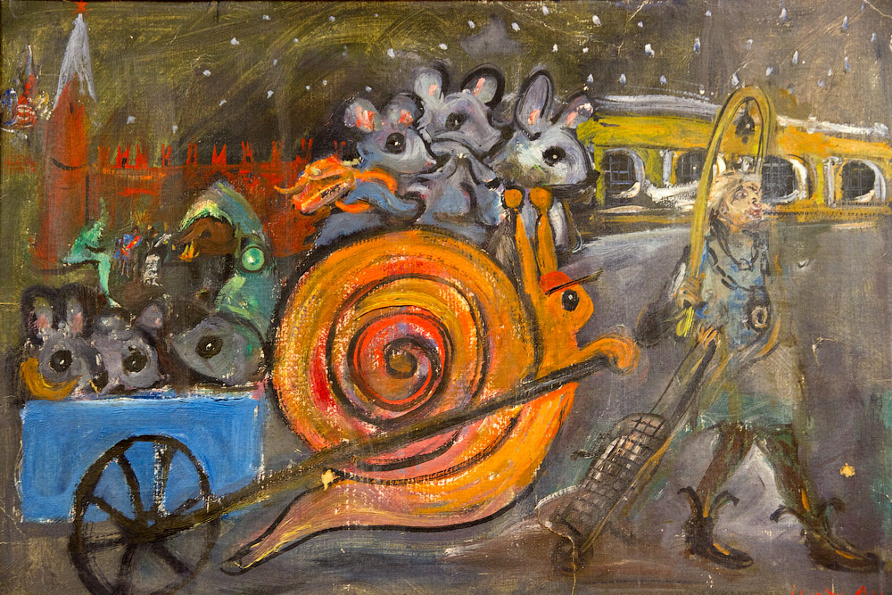 ДИМА ШИРОКОВ – ИЗРАЗЦЫ 6 февраля 2013 В Малом зале и Оранжевой галерее РГБМ сейчас проходит удивительная выставка под обманчиво скромным названием «Натта Конышева – картины, Дима Широков – изразцы». Открытие выставки состоялось 24 января, а посещать её можно будет весь февраль, до 28-го числа, каждые понедельник, пятницу, субботу, воскресенье с 11:00 до 19:00. Волшебный мир наивного искусства, магического реализма и честной русской хитринки – всё это в работах художницы Натты Конышевой и керамиста Дмитрия Широкова. Никто не расскажет о работах художника лучше другого художника. Поэтому мы предлагаем вам начать знакомство с параллельными мирами наших чудесных авторов, почитав интервью с Димой Широковым. Это не совсем интервью в традиционном смысле – беседы проходили спонтанно, в ходе длительного монтажа выставки, начинались с полуслова, прерывались порой на час-два, иногда – на день, жили, развивались, уточнялись. Дима развешивал картины, монтировал подвеску изразцов, расставлял свои феерические чайнички и квасники, а я ходила следом, помогала, расспрашивала и записывала… Итак – слово Диме Широкову. КТО ТАКАЯ НАТТА КОНЫШЕВА Натта давно стала легендарной художницей, на писаных ею портретах – пол-Москвы; редкая выставка или вернисаж обходятся без неё. Её я знаю больше тридцати лет, а в 1981-м году, когда с ней познакомился, не мог и представить, что удостоюсь совместной выставки. О большем, нежели позирование для портрета или покупка за 10 рублей её небольшой картины, я даже и не мечтал. В своё время Натта окончила школу с золотой медалью, потом поступила в Полиграфический институт. Иллюстрировала книги, работала в промграфике (сейчас это назвали бы полиграфическим дизайном), придумывала эмблемы для предприятий лёгкой промышленности (логотипы, как сейчас говорят), этикетки к товарам (сейчас это называют «разработка фирменного стиля»). Но живопись перевесила, Натта вступает в МОССХ – официальный союз художников, а позже в Горком графиков (авангардистов). И там и тут её недолюбливали. «Иди к своим авангардистам!» – говорили в МОССХе, «Иди в свой МОССХ!» – говорили в Горкоме графиков. Но Натта не унывала, пробиваясь на выставки и туда, и сюда.